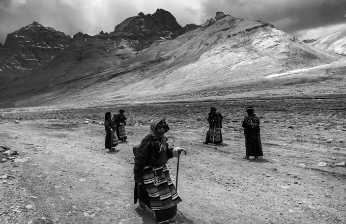 转山的方向也很有讲究,佛教是沿顺时针方向转,而苯教教徒则是沿逆时针方向转。千百年来,去往冈仁波齐的朝圣者络绎不绝,在通往神山的一条条道路上,形成了一个耐人寻味、令人感慨的永动流。神山已深深地寓于西藏的宗教历史文化之中。